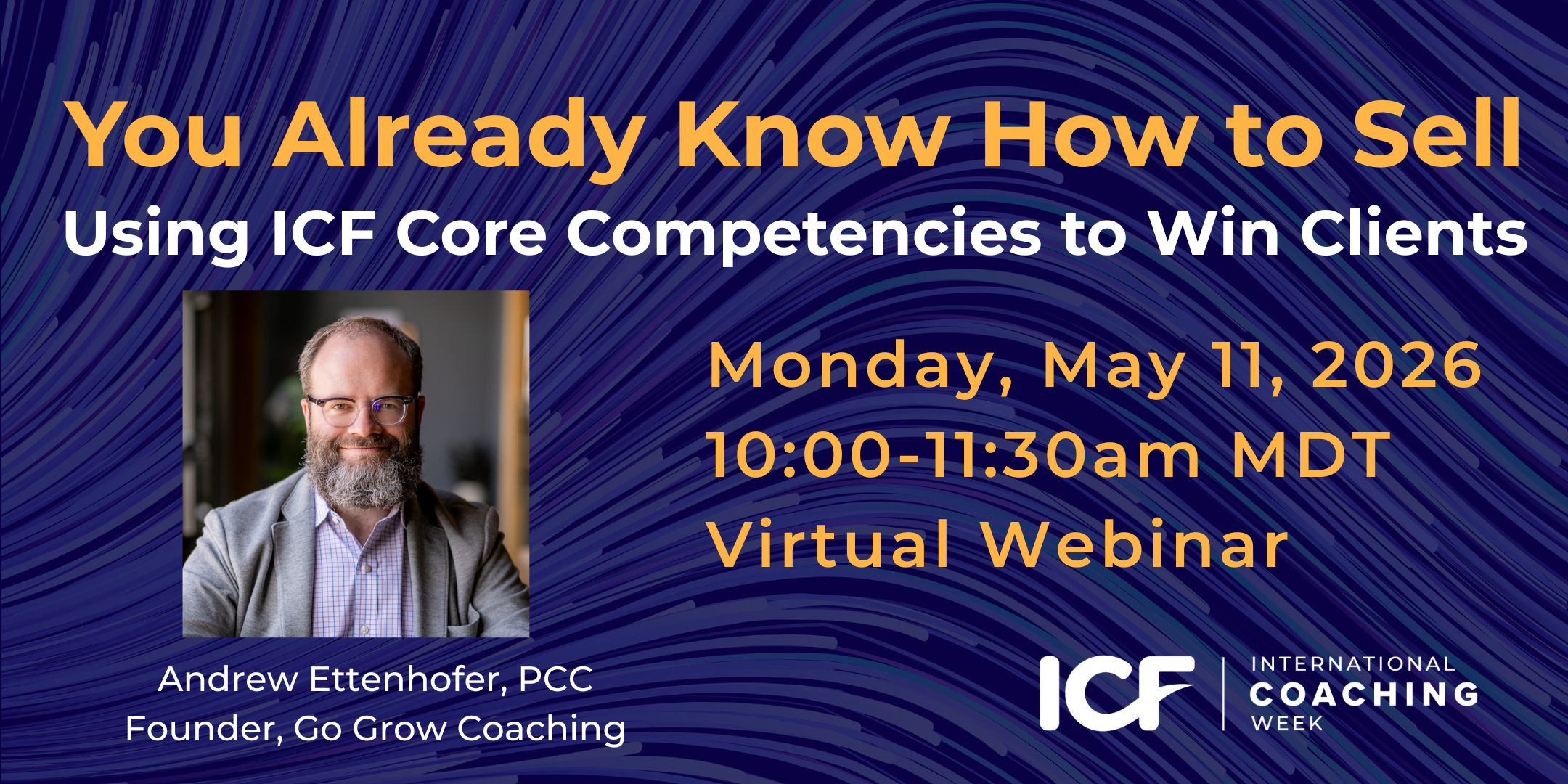I'm hosting a webinar during the International Coaching Week (ICW) organized by the International Coaching Federation (ICF). I will be exploring how productive sales conversations are very similar to productive coaching conversations, as laid out by the ICF Core Competencies.